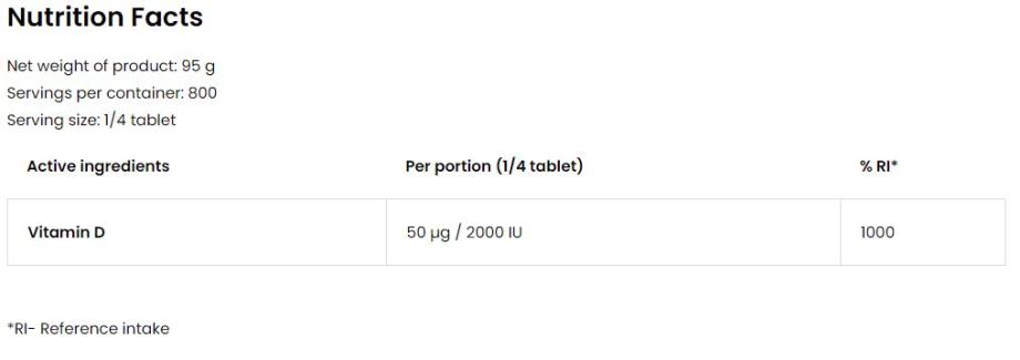 VITAMIN D3 8000 I.U. ne sadrži nikakve GMO sastojke niti sastojke koji su zabranjeni od strane Svjetske Anti-Doping Agencije (WADA) tako da je siguran za uzimanje svim natjecateljskim sportašima.