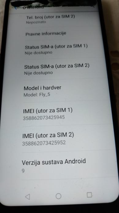 Kvrcnut je malo gore lijevo.Jedva se vidi no ipak se odražava na kvaliteti ekrana kad je upaljen pa ima crnu mrlju gore širine 1 cm( vidi na slici).Zato je cijena niska.Ima 6,27 inch ekran, 4 GB RAM i 64 GB pohrane.Android 9.Staklo i plastika očuvani.