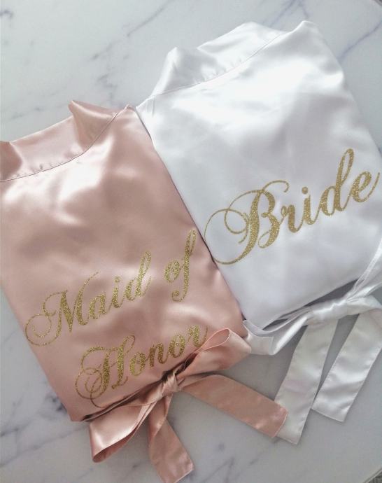 Satenski ogrtači za mladu i kumu, Bride, Maid of Honor, Team Bride