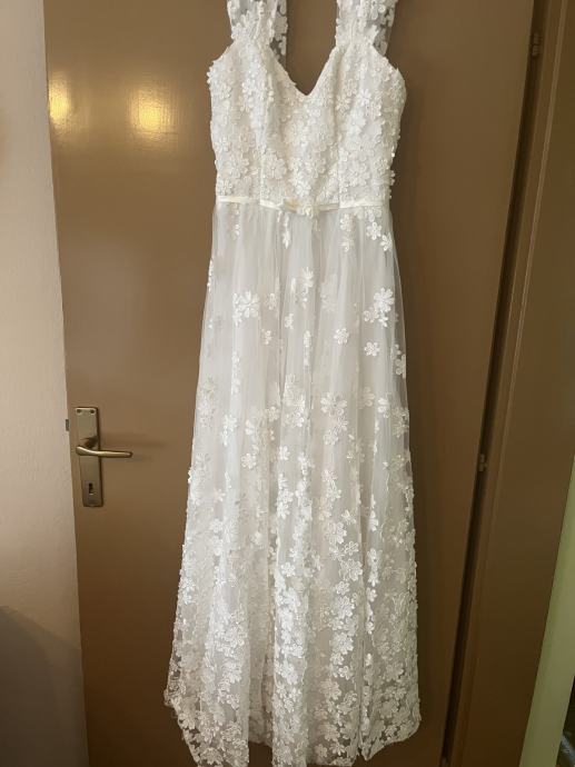 Prodajem vjenčanicu u odličnom stanju. Prikladna za djevojke konfekcijskog broja 38 i visine do 160cm otprilike.