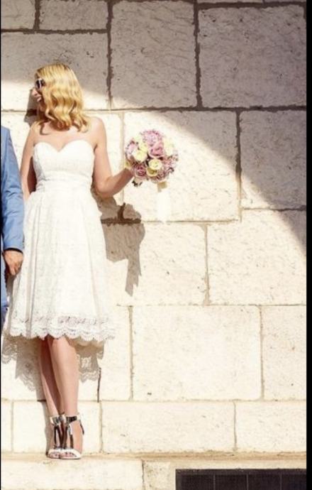 Prodajem kratku cipkastu vjencanicu koju je kreirala Aleksandra Dojcinovic. Nosena jednom, poslije cega je bila na kemijskom. Konf.br.36.
