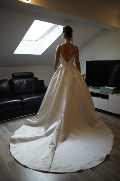 Prodajem satensku vjenčanicu marke Milla Nova kupljenu u salonu vjenčanica Vesna Sposa i kemijski očišćenu nakon vjenčanja.