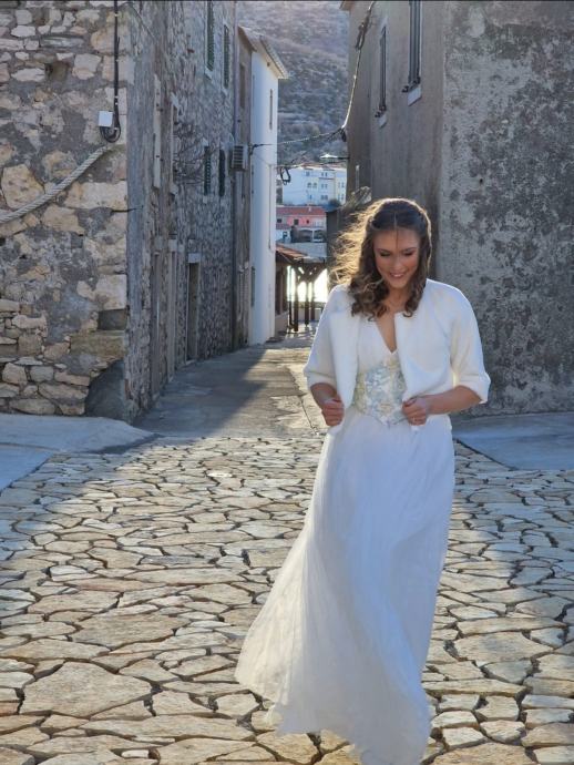 Uz vjenčanicu dolazi i veo od tila dužine 3m te bundica.