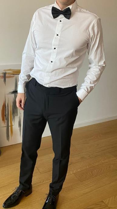 Uz odijelo dolaze cipele, mašna , prsluk i košulja sa manđetama. ( Imamo dvije košulje M i L)