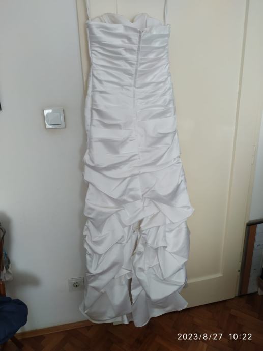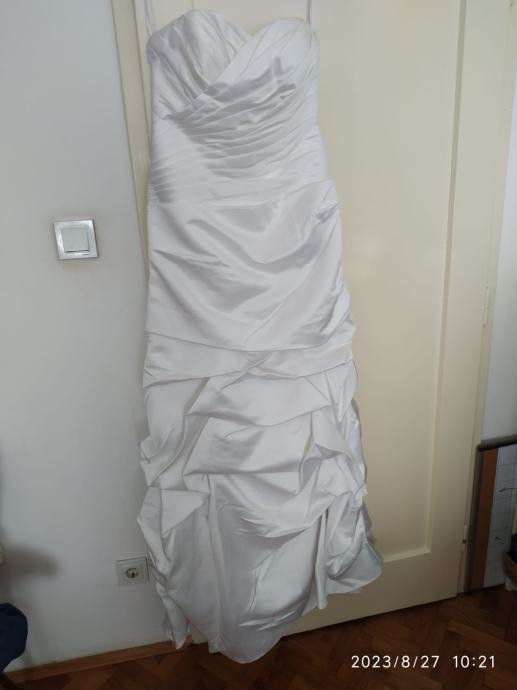 Prodajem prekrasnu bogatu vjenčanicu s naramenicama bijele boje i ugrađenim grudnjakom, Stražnji dio može biti pušten po podu. Jednom nošena.