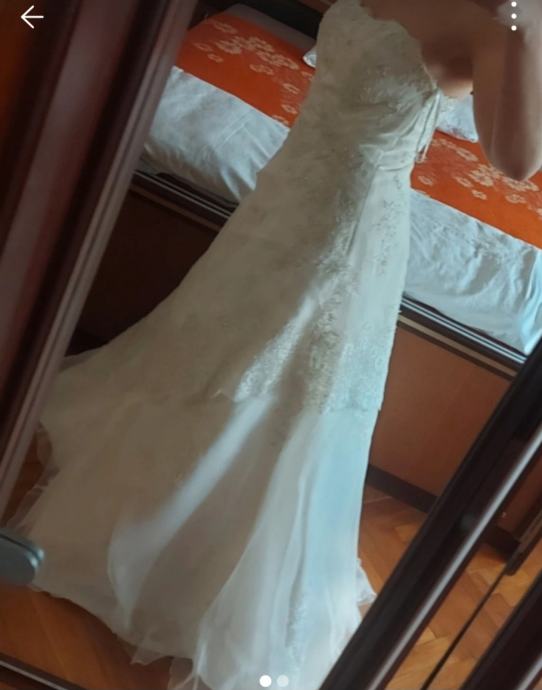 Prodajem vjenčanicu modela Nikolina od brenda Slon. Haljina je bijele boje, kroja koji naglašava figuru, s lijepim čipkastim detaljima duž cijele dužine. Bez naramenica je i seže do poda s blagom vlakom. Elegantnog je i klasičnog izgleda.