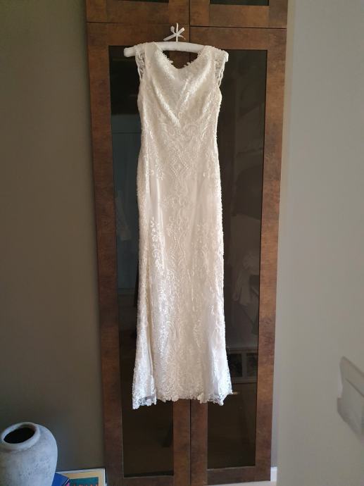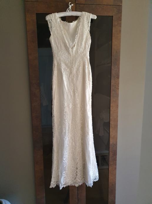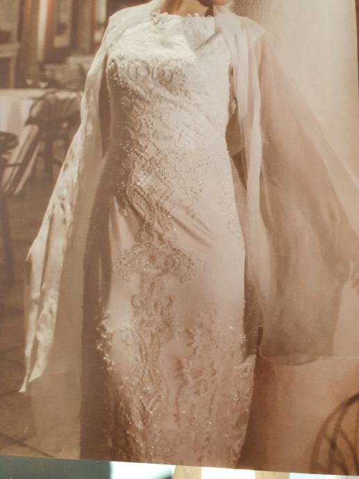 Prodajem vjenčanicu poznatog hrvatskog dizajnera Borisa Pavlina. Haljina je bijele boje izrađena od ručno vezene čipke sa ušivenim perlicama dok je podstava 100% svila. Veličina haljine je otprilike 38 odnosno IT40 a visina za osobu od 177cm.