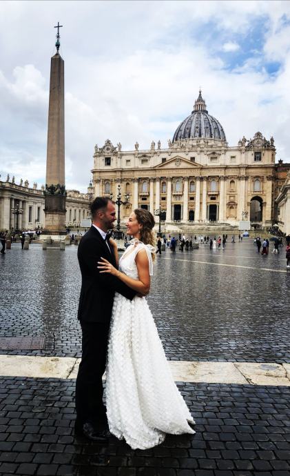 Nošena u listopadu 2021. godine na dan vjenčanja te u Rimu kod pape na blagoslovu.
