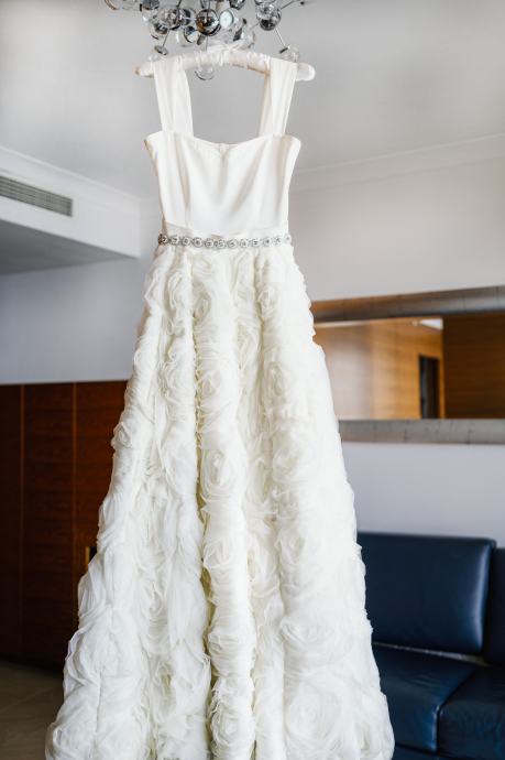 Prodajem vjenčanicu dizajnera Mihana Momose. Uz vjenčanicu dolazi podsuknja/kolut, veo sa češljićem te dodatni veo samo za ramena, ukras za kosu i naušnice te original navlaka za vjenčanicu.