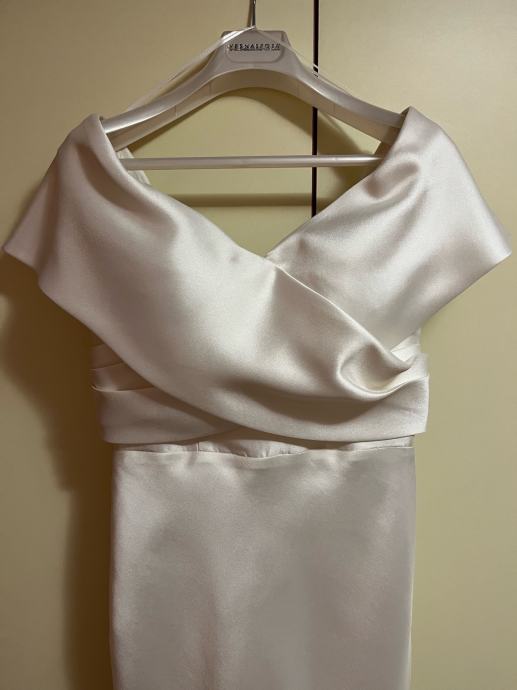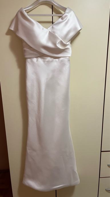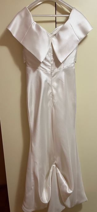 Prodajem vjenčanicu kupljenu u Sposi. Visoka sam 168cm i mjerena je sa petama od 8 cm. Imam 63 kg. Uz vjenčanicu se dobije jako dugačak šlep.