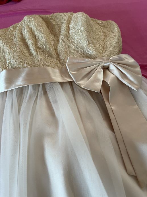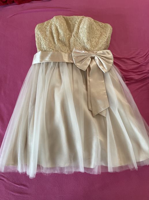 Svečana haljina bez naramenica, bež boje tj. zlatna, prema slici. Proizvodjac Lamona, peeek&Clopenburg trgovina