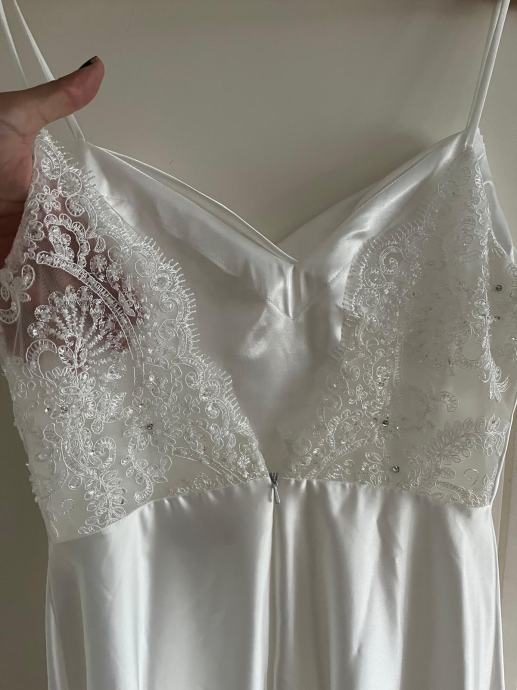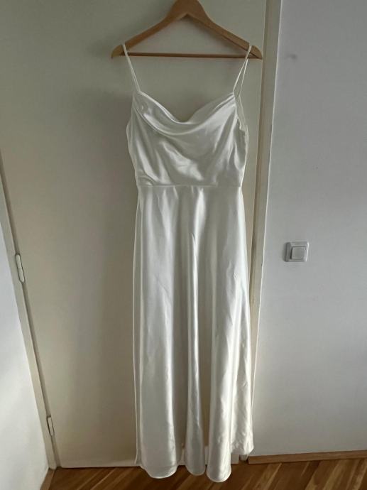 Velicina haljine je 38, a visina za koju je uzimano je 177cm. U haljinu su ugrađene košarice. Materijal je polyester.