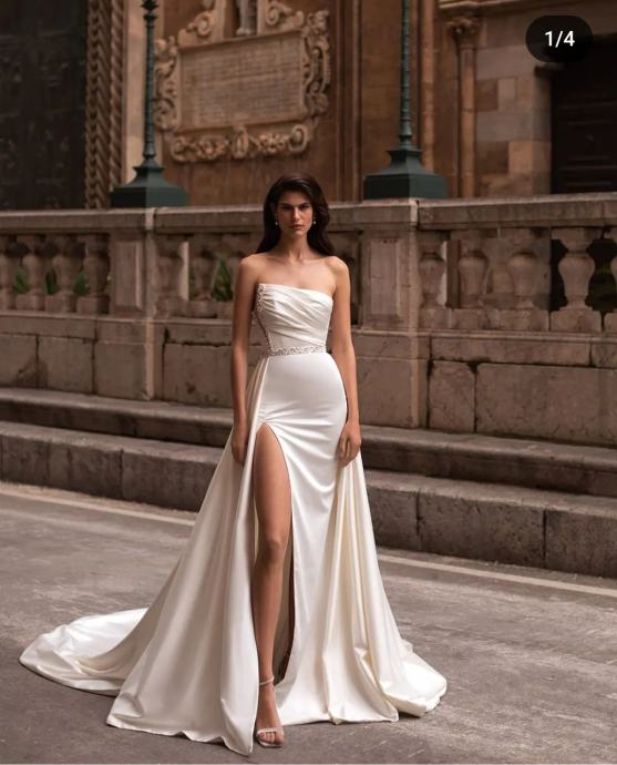 Vjenčanje je bilo 08.06.2024., vjenčanica je bez oštećenja i kemijski očišćena. Ono što je bitno da sam ja vjenčanicu kupila prije nego što je izašla u prodaju i da sam ju nosila samo ja, kao dokaz.imam račun i ugovor. Vjenčanica je u struku sužena prema meni i to je sve što je na njoj rađeno, dolazi u dva dijela, vjenčanica i prekrasan dugačak šlep.