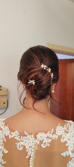 Prodajem elegantnu vjenčanicu sa slika. Šivana po mjeri, odgovara veličini M/L. Odgovara visini 173cm + 7cm peta. Materijal je rastezljiv i jako udoban za nošenje. Dužina šlepe je cca 2m i može se podići. Uz vjenčanicu dolazi i pokrivalo za ruke kao i ukosnice za frizuru. Haljina je kemijski očišćena, očuvana i u odličnom stanju