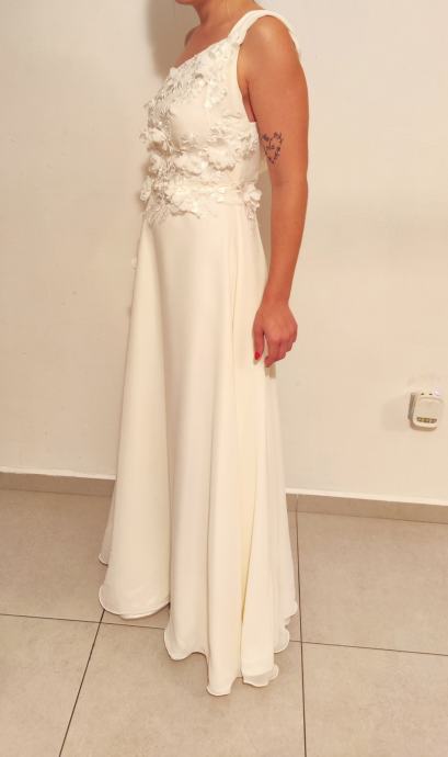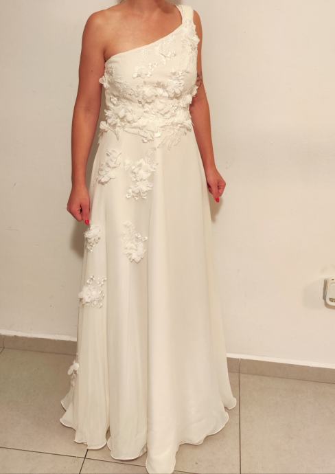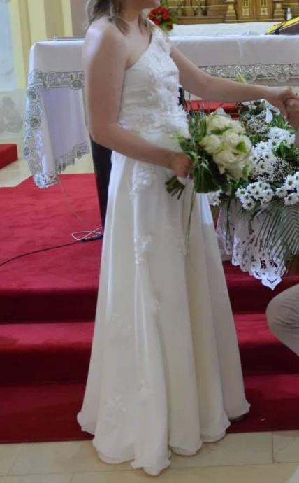 Prodajem vjenčanicu, veličina S, jednom nošena i kemijski očišćena. Uz vjenčanicu gratis ide veo. Za osobu visine 165 cm je do poda. Moguć je dogovor oko cijene.