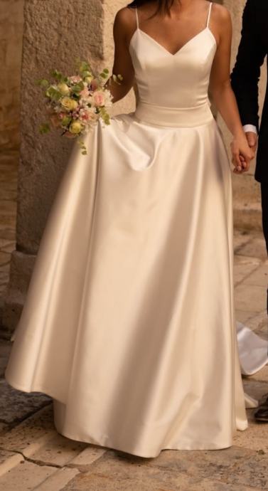 Prodajem jednom nošenu vjenčanicu,šivana po mjeri ,veličina 38.