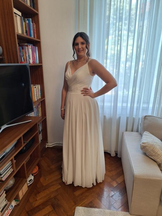 Prodajem prekrasnu vjenčanicu iz salona Nikolina - jednostavnog, elegantnog kroja i vrlo laganu za nošenje – savršenu za mladenku koja želi uživati u svakom trenutku svog dana.