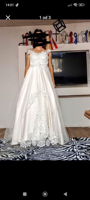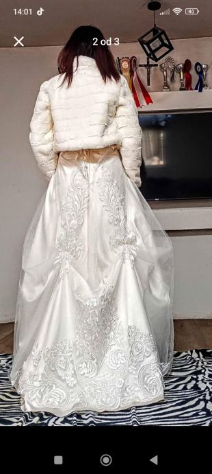 Prodajem vjenčanicu boje šampanjca, broj 34/38, potrebno ju je kemijski očistiti