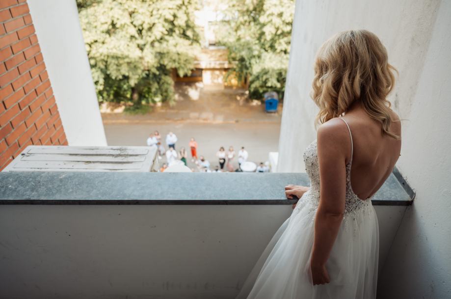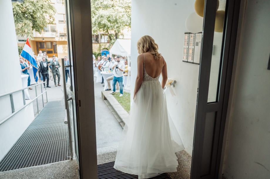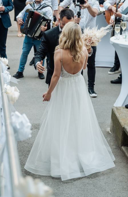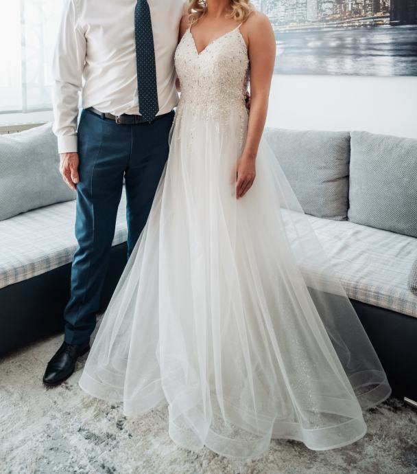 Prekrasna vjencanica za zene oko 160-165 cm, velicine 34/36. Kosarice C/D, jednom nosena.