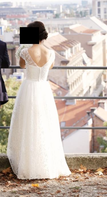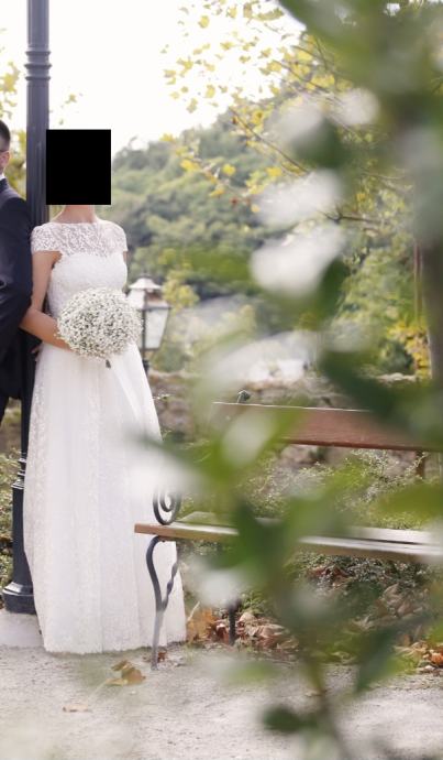 Prodajem vjenčanicu Sandre Haddad iz kolekcije "Do you believe in Fairies?". Nošena jednom, par sati na malom intimnom vjenčanju, bez ikakvih oštećenja, kemijski očišćena. Vjenčanica je izuzetno lagana te odgovara veličini 36. Uz haljinu poklanjam dugi veo.
