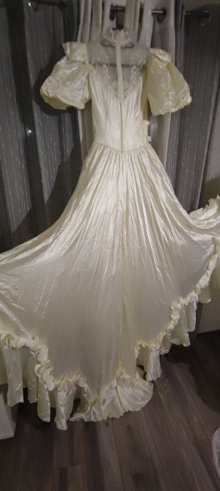 Prodajem novu, nikad korištenu satensku vintage vjenčanicu u pjenušac . Vjenčanica je potpuno očuvana sa dugačkim šlepom i puf rukavima. Ukoliko ste zainteresirani, imajte na umu da vjenčanica nije ispeglana. Za sve dodatne informacije slobodno me kontaktirajte na 0921811016.