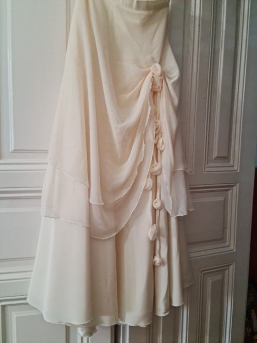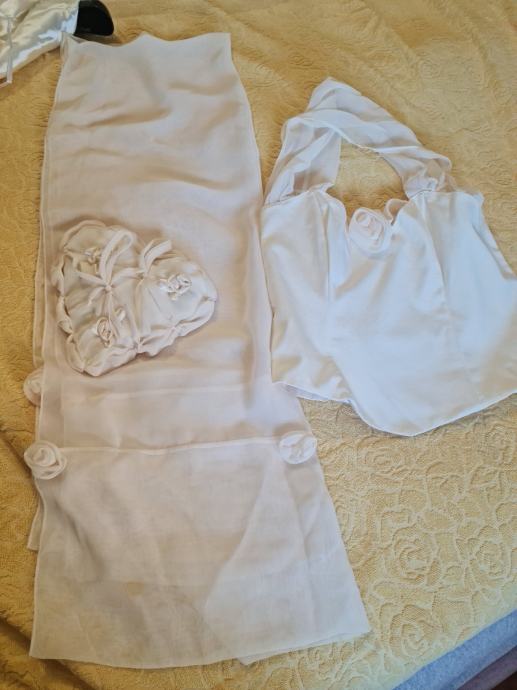 Prodajem vjenčanicu...u dva dijela, korzet i krinolina. Veličina L, za visinu cca175 cm, uz nju poklanjam jastučić za prstene i šal za crkvu . Zagreb...cijena 200 eura