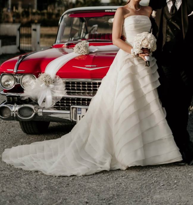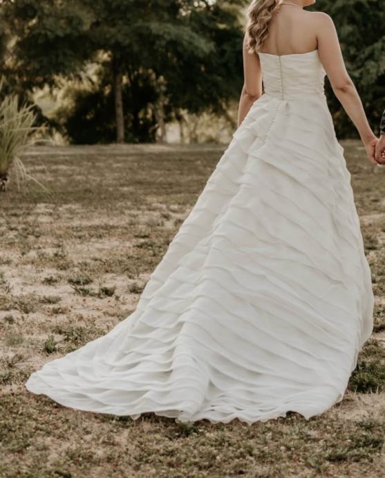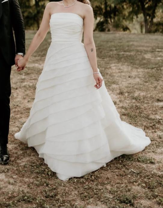 Prodajem original vjenčanicu Vera Wang prvo nošenje, veličine 36, ali se može proširiti do veličine 42. Haljina je profesionalno kemijski očišćena te izvrsno očuvana.
