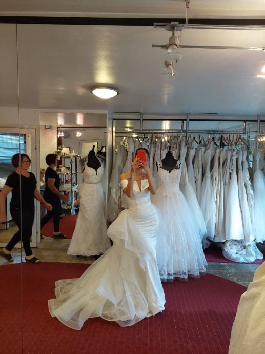 Vjenčanica Wildin. U savršenom stanju, oprana i spremna za daljnju upotrebu. Šlep je moguće maknuti, ovisno o željama. Moguće ju je pogledati i probati u Zagrebu.