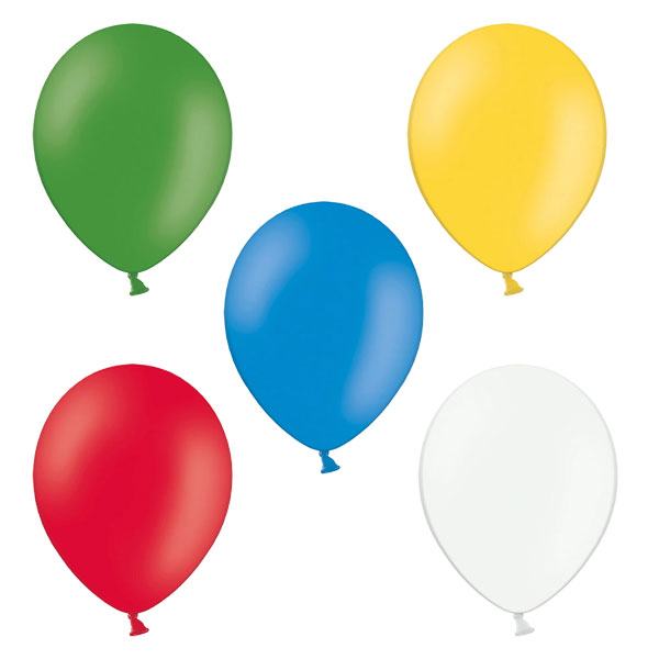 Baloni jednobojni srednje veličine fi 25 cm izrađeni od latex-a. Dostupne boja: plava, crvena, zelena, bijela, žuta.