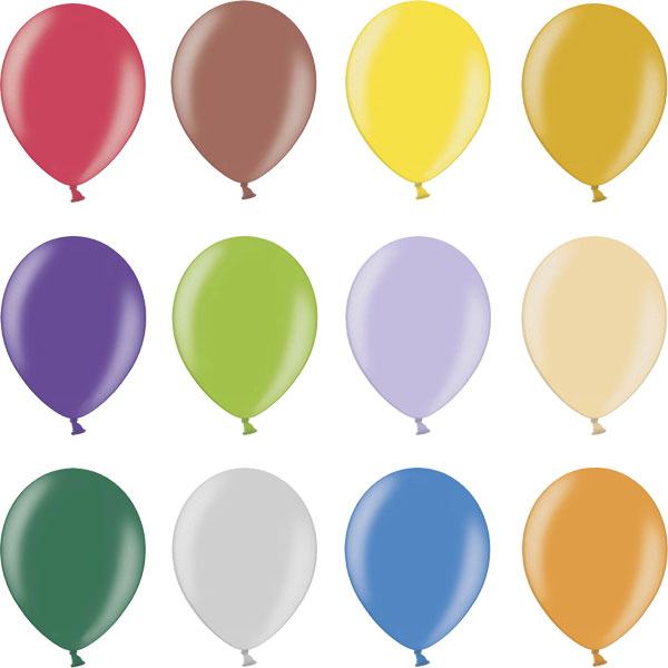 Veliki jednobojni metallic baloni izrađeni od najkvalitetnijeg prirodnog latexa. Mogu se puniti helijem ili običnim zrakom. Veličina napuhanog balona: 30 - 33 cm. Baloni se mogu napuhivati ustima, pumpom za balone ili kompresorom. Proizvođač: PartyDeco, Poljska. Dostupne metallic boje: ljubičasta, žuta, boja breskve, zelena, zlatna, narančasta, lila, smeđa, crvena, limeta zelena, plava, srebrna.