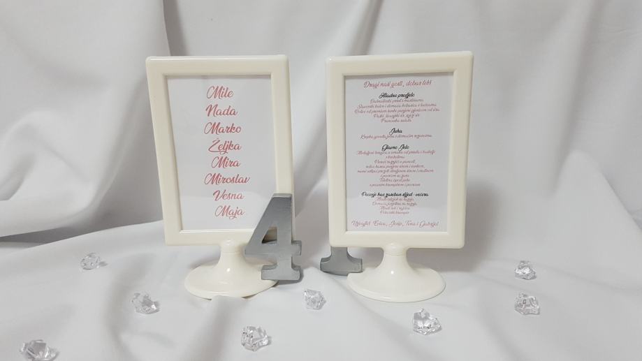 Unikatni brojevi za stolove sa rasporedom sjedenja i meniem ili nekom drugom porukom.