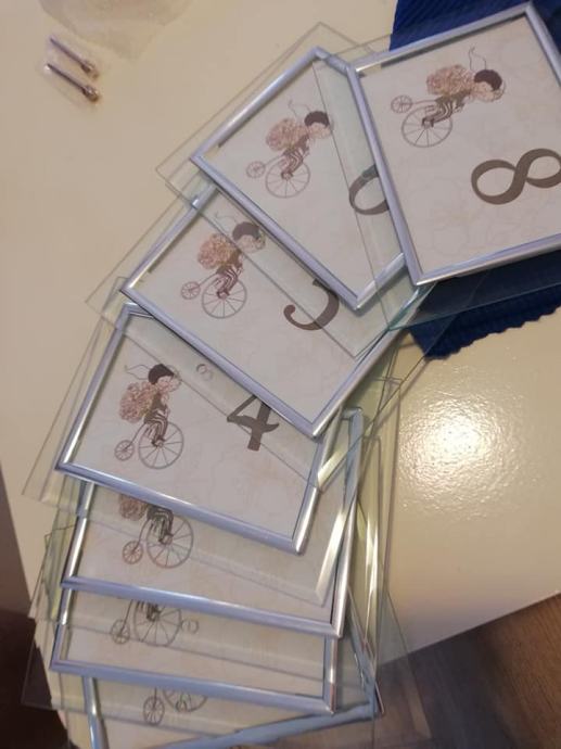 Prodajem prekrasne, elegantne brojeve za stolove u staklenom okviru.