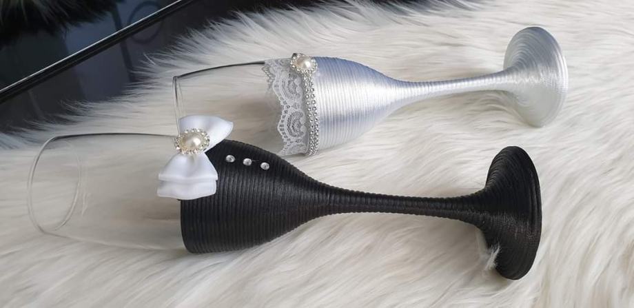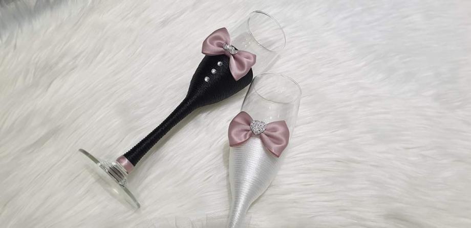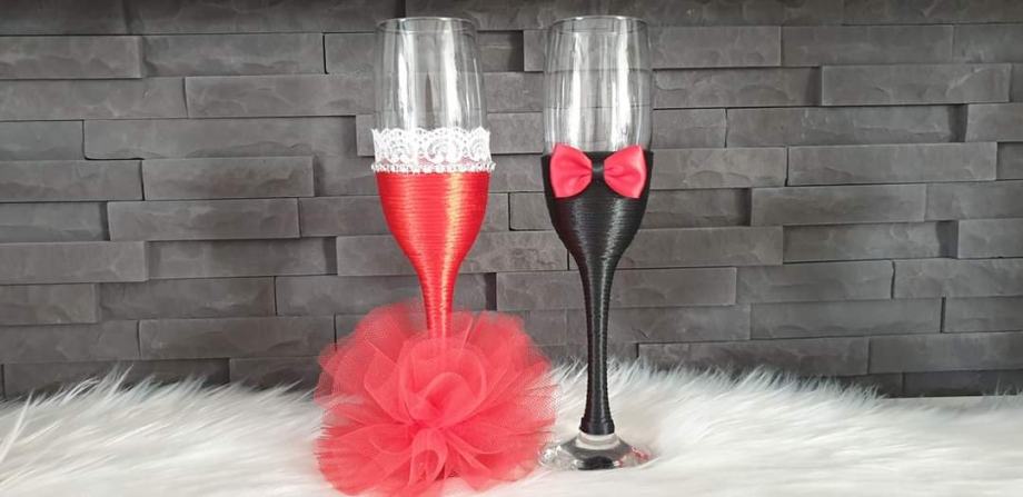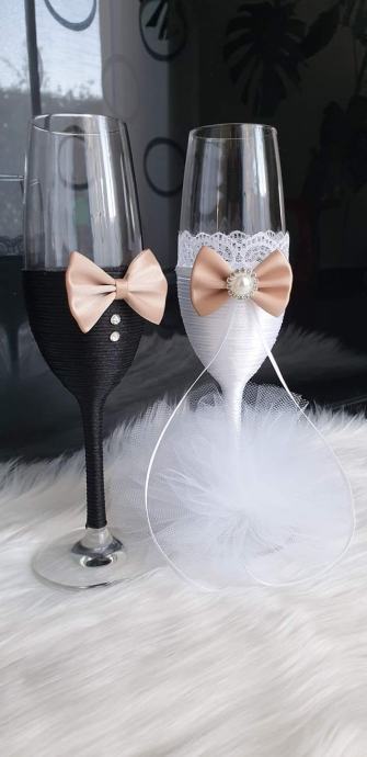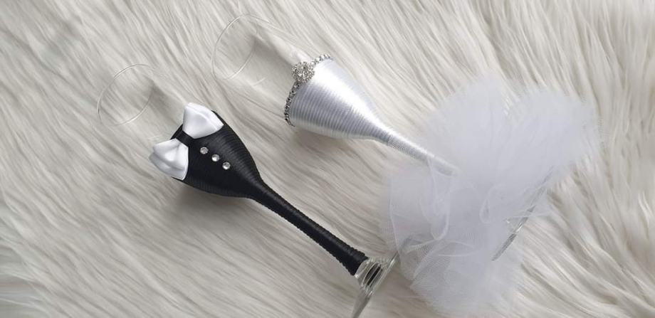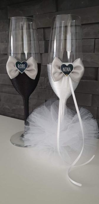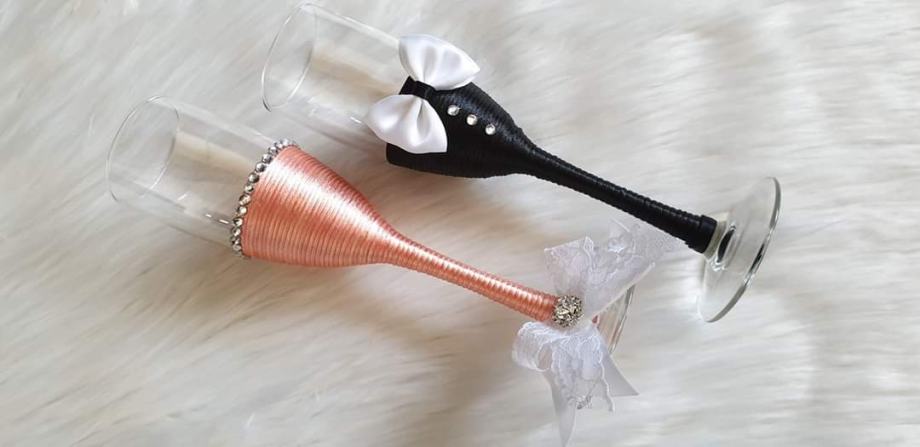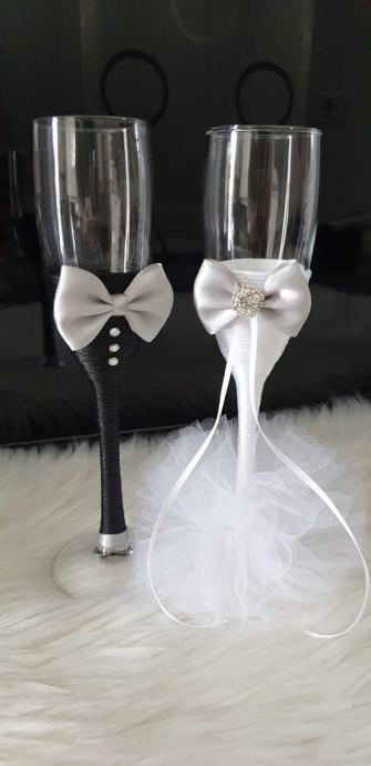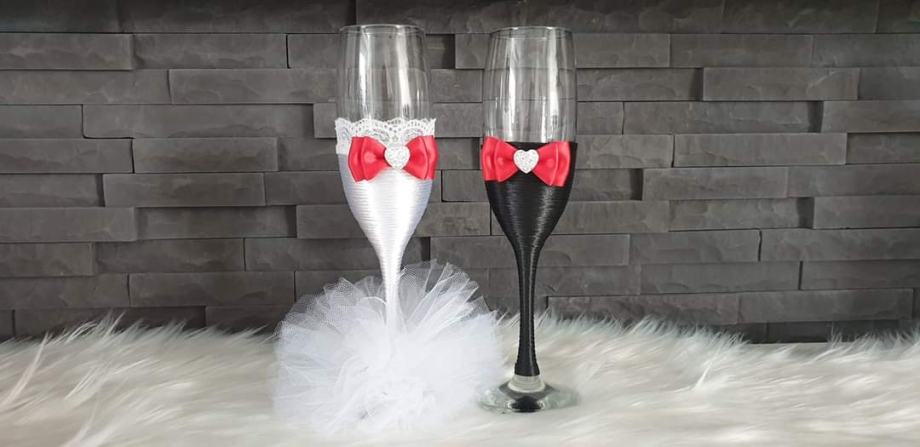 Čaše za mladence uglavnom su čaše za šampanjac kojima mladencu nazdravljaju.