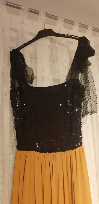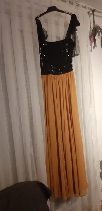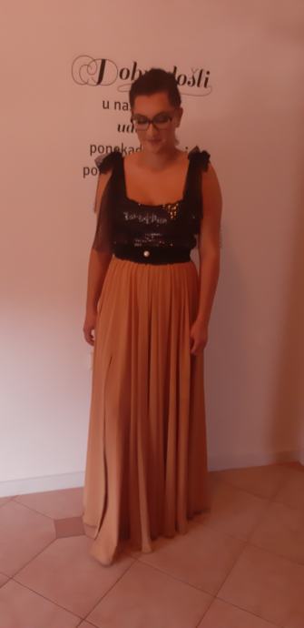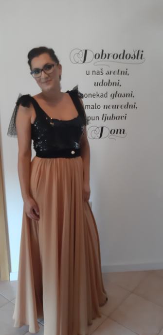 Odgovara konfekcijskom broju M (visina 176 + 6 cm štikle). Haljina se može i skratiti. Postoji mogućnost dogovora oko cijene!