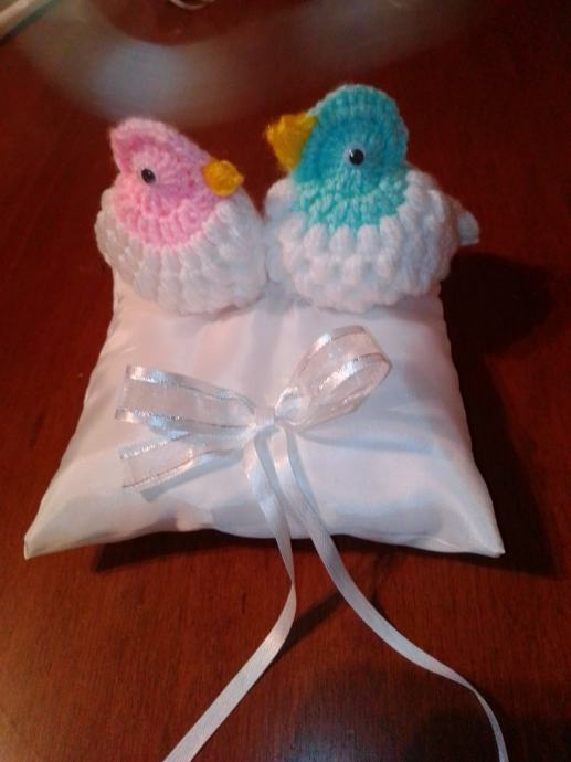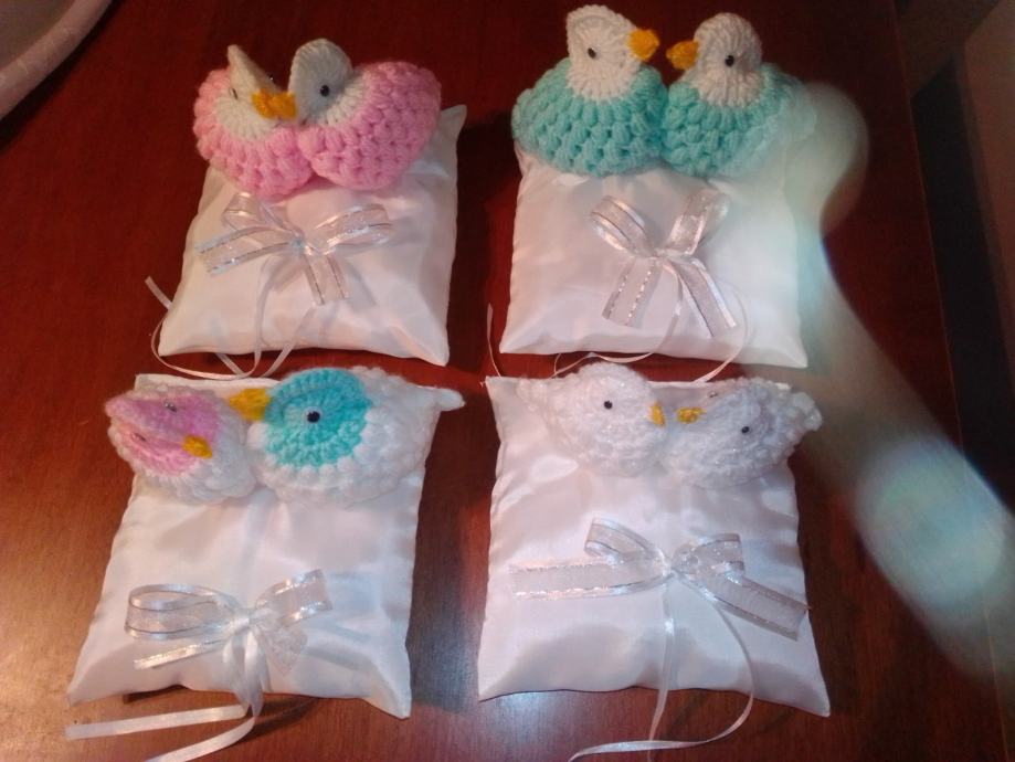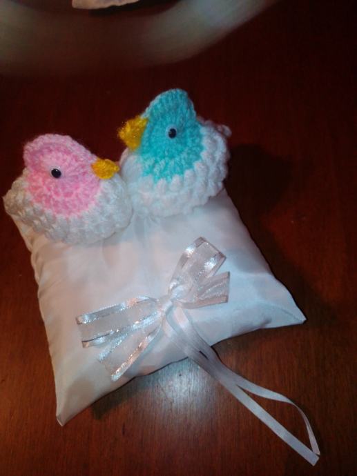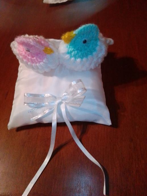 Novi jastučić za prstenje cca 15-16 cm. Na jastučiću su i dva goluba kao simbol ljubavi.