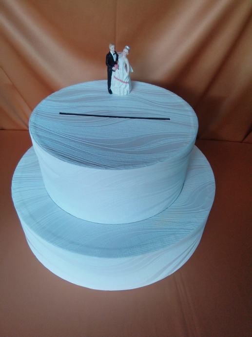 Nova kutija-torta "Candy" iz naše proizvodnje; elegantno rješenje za svadbena darivanja, dostupna odmah. Namijenjena za vjenčanja do otprilike 200 uzvanika.