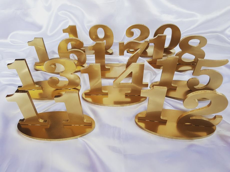 Najam brojeva 1-20 od drveta u zlatnoj boji.