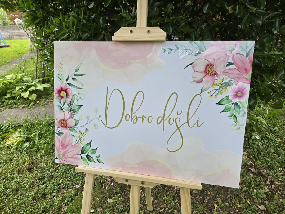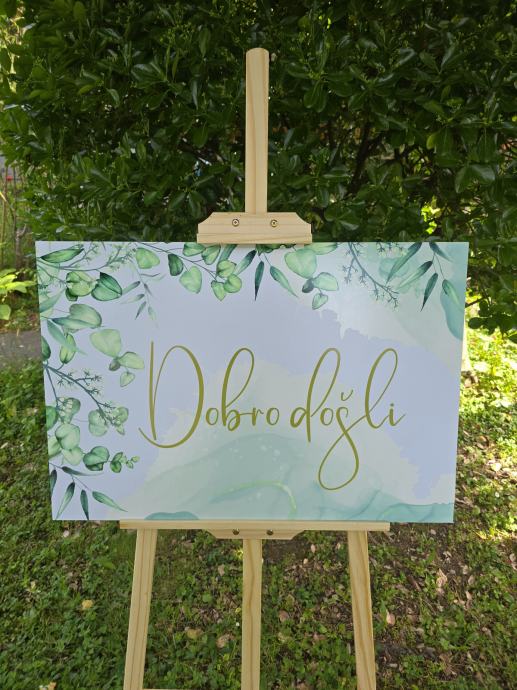 NAPOMENA: prilikom preuzimanja natpisa plaćate punu cijenu od 60€. Iznos od 35€ vam se vraća prilikom povrata neoštećenog natpisa i stalka.