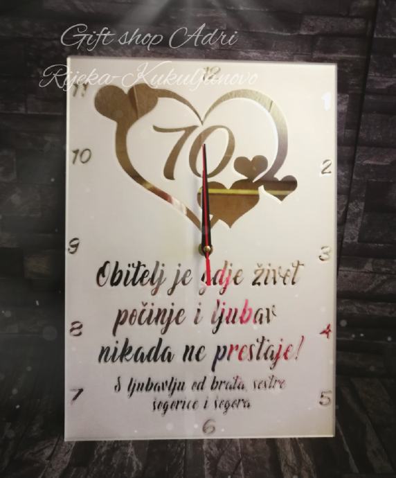 Zidni stakleni sat 35x25 cm sa izradom za 70 rođendan