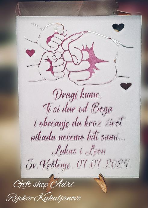 Mogućnost izrade poklona sa personalizacijom . Nakon izrade poklon možemo prema potrebi poslati dostavnom službom . Za sve informacije pišite nam na mail adresu giftadri@gmail.com , rado ćemo odgovoriti.