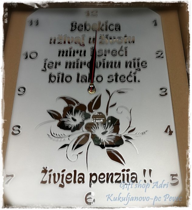 Zidni sat stakleni 35 x 25 cm , za odlazak u mirovinu.