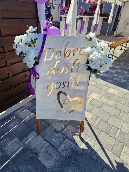 Na prodaju dekorativni rekviziti za vjenčanje i namještaj. Jednom korišteno, u jako dobrom stanju. Mogućnost kupovine pojedinačnih artikala.