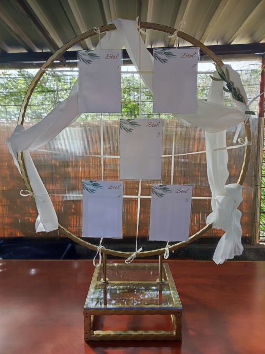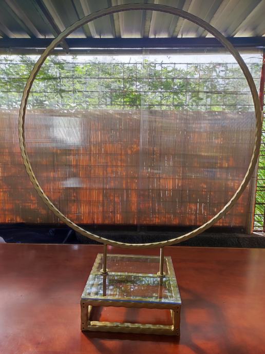 Zlatni metalni krug za raspored sjedenja na vjenčanju, jednom korišten, nije oštećen