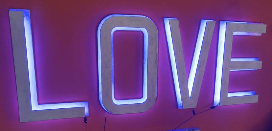 Slova su napravljena od dva sloja osb ploča. Stražnji sloj je za 2 cm veći od prednjeg sloja kako bi odsjaj led trake bio primjetniji. Traka je montirana na prednji sloj ploče i okrenuta je prema stražnjem sloju.