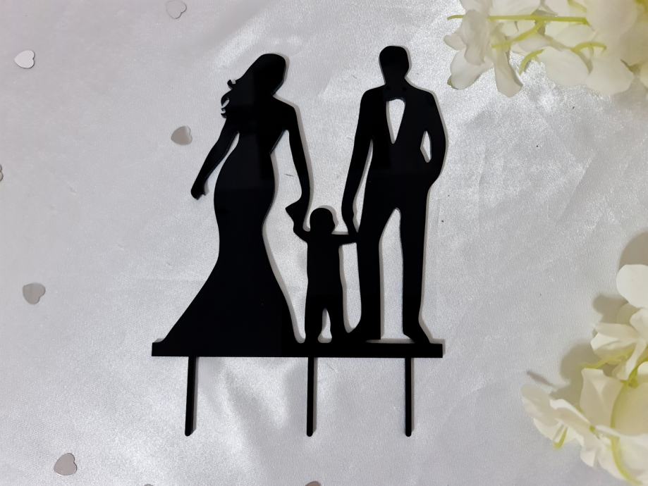 Ukras za svadbenu tortu, mladenci sa djetetom.