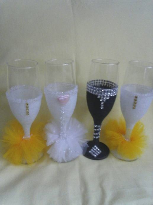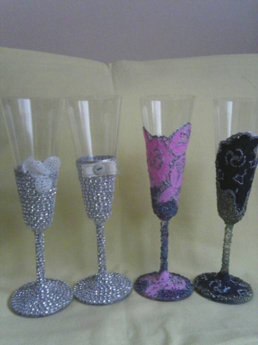 Ukrasne čaše za razne prigode od vjenčanja do raznih obljetnica, obradujte drage osobe nećim posebnim ručno izrađenim, uz šampanjac ili neko vino pravi poklon, 40 kn. kom. tel. 095 8005094