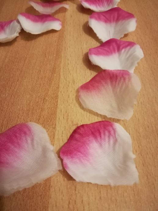 Prodajem umjetne latice ruza roza-bijele boje,te roza-bijele sa natpisom LOVE za vjencanja,romanticnu veceru,prosidbu.