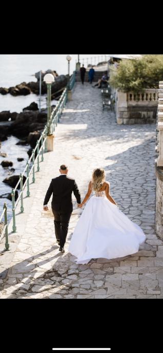 7 m materijala u šlepu. Odvojen je od glavne haljine (može se skinuti).