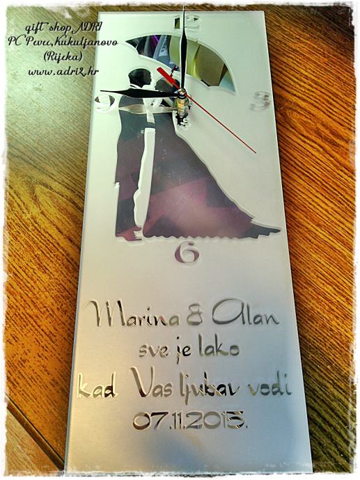 Zidni sat 18X45 cm -brušeno ogledalo, kao personalizirani poklon za vjenčanje ili zaruke.