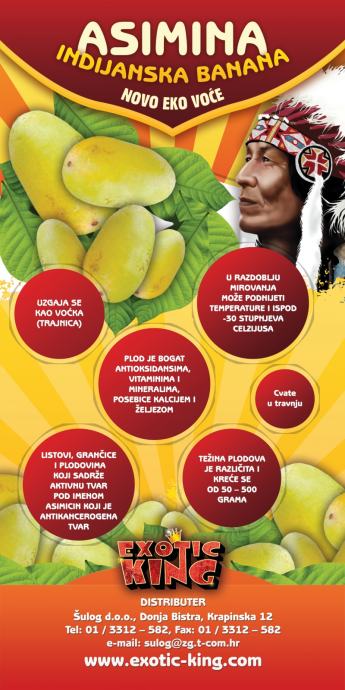 Zbog vrlo velikog interesa oko postavljanja plantaža Indijanske banana, Hrvatska bi mogla postati jedan od glavnih izvoznika tog SUPER zdravog voća na EU zahtjevno tržište, USA, ali također i u Japan, gdje izrazito cijene takve voćne vrste (sibirska borovnica, mongolska trešnja, mongolska borovnica). Plantažeri u Americi, jedinoj zemlji gdje se danas Asimina proizvodi, mogu danas zadovoljiti samo 0,8 % potreba lokalnog USA tržišta. Zbog svog antikancerogenog djelovanja te nutritivno superiornih svojstava voća, sadnog materijala nije moguće proizvesti koliko tržište traži. Kvalitetnog sadnog materijala za 2015. ima svega 8000 sadnica koje traži čitava EU, te je najvažnije dobro se savjetovati kod sadnog materijala. Naravno kako to uvijek ide, pojavljuju se lovci u mutnom koji nude sve i svašta – ali uglavnom sadni materijal bez potencijala. Interesantno je da plantaže ne traže ogradu jer divljač ne radi nikakvu štetu. Naše plantaže se nalaze uz šumu i nikakvih šteta nismo imali.